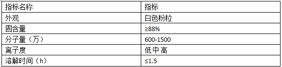 阳离子聚丙烯酰胺外观为白色粉粒,是一种水溶性高分子电解质,易溶于水,不溶于乙醇、丙酮等有机溶剂,其分子链上带有阳离子基团和活性吸附基团,通过电中和及吸附架桥作用,降低水中电位,使水中悬浮颗粒和带负电荷的水溶性物质失稳、絮凝,形成较大的絮凝物,使悬浮物沉降或浮上,从而达到净化水的目的。